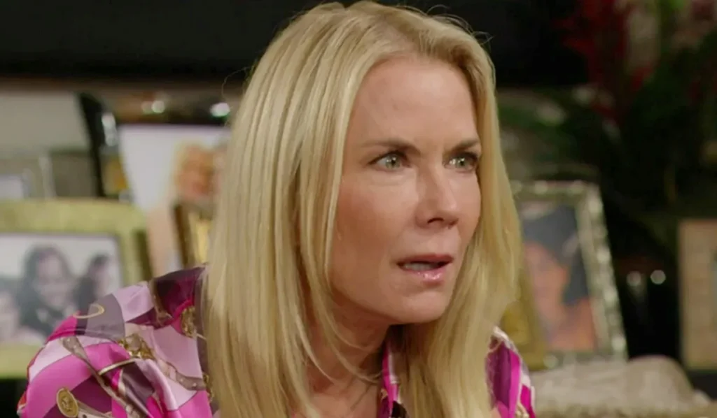 The scene ends with Ridge quietly apologizing while Brooke looks away, lips trembling with emotion. She doesn’t yell—but her silence speaks louder than any confrontation.