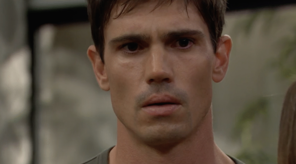 His expression tightens, jaw clenched, eyes glassy with barely contained emotion. Even after everything Luna had done—all the chaos, the crimes, the near-fatal attacks—Finn cannot flip the switch on their blood connection. In third person, he tells Miss Dylan he’s struggling to forgive, that she “took something” from him, even if by accident. His grief becomes anger, his anger becomes heartbreak, and he turns away from everyone as he wipes his eyes. It’s a raw, intense moment, and even Steffy notices the emotional crack forming in him.