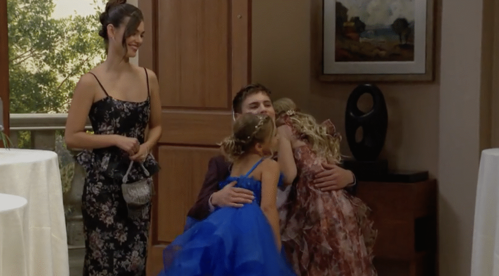 When Brooke heads upstairs and joins Donna, Katie, and Hope, the four Logan women come together in a warm group hug. The moment is emotional — four generations of Logan history, strength, and family pride wrapped into one cluster of beautiful scenes. They share compliments, tears, laughs, and a mutual sense that today represents hope, healing, and love.