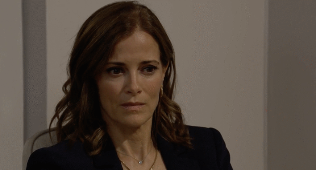 Sheila, however, becomes more intense. She paces the room, hands waving, breathing hard. She rants about being “treated like a monster” while other people with terrible pasts are forgiven. She even brings up Bill Spencer by name, saying he’s done worse things but he gets to be present while she is shut out “like an animal.”